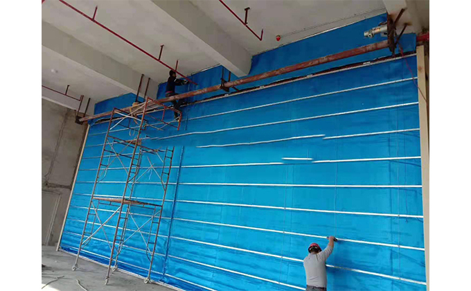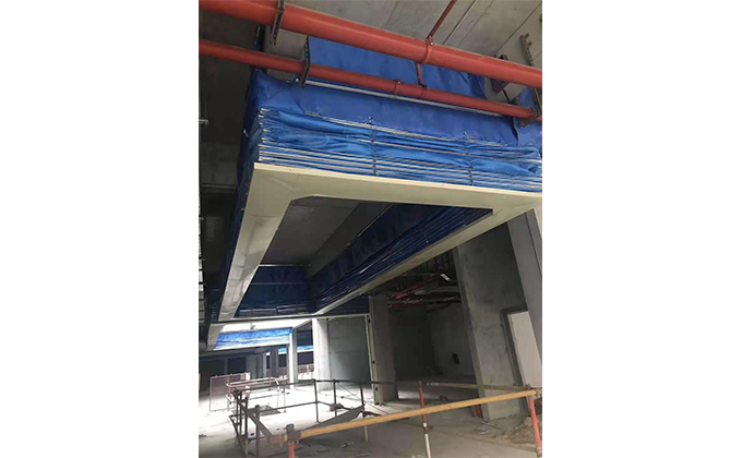 擋煙垂簾垂壁根據(jù)設(shè)計要求和現(xiàn)場實(shí)際情況采取如下施工順序:首先,搭設(shè)腳手架一放線一打眼--上脹栓一焊骨架。第二,吊件一安裝骨架…